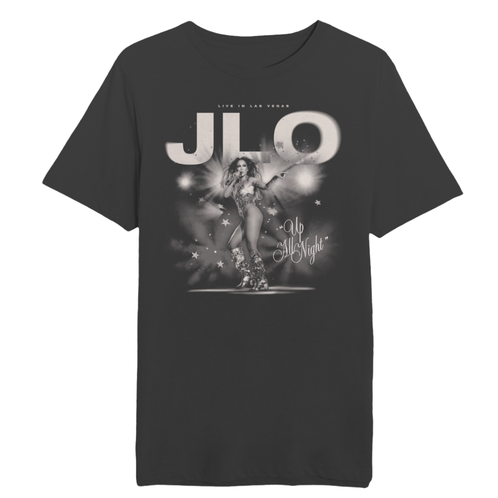Vintage Black 100% combed ring-spun cotton, soft-washed printed on front with New Year's Eve artwork inspired by Jennifer's 2025 Vegas residency.